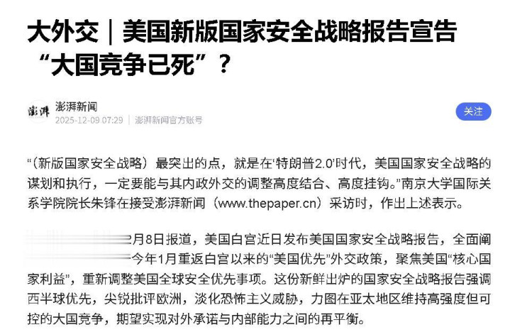 真相浮出:战略文件公开承认新格局